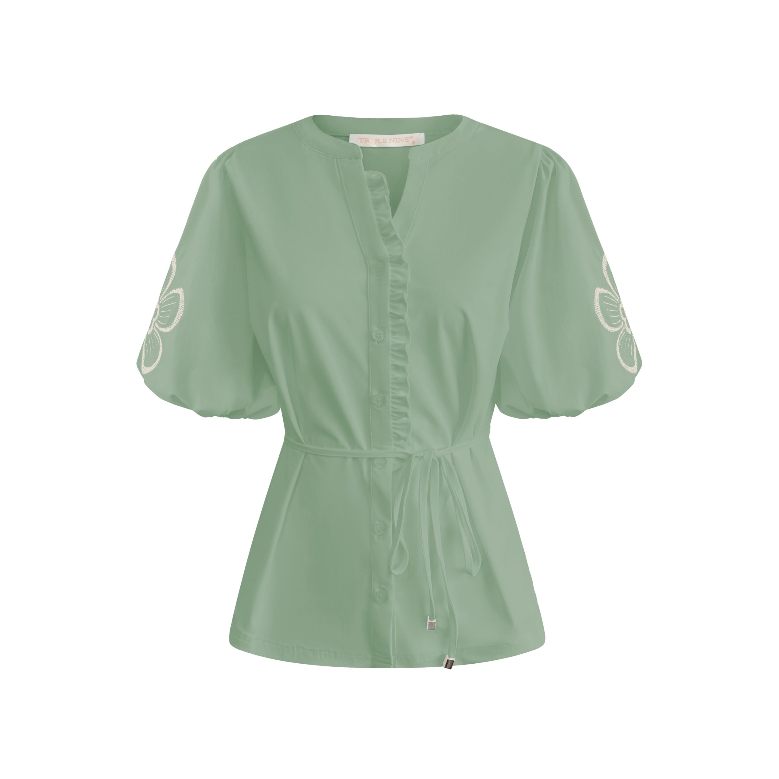 Triple Nine Blouse short sleeves embroidery sage groen