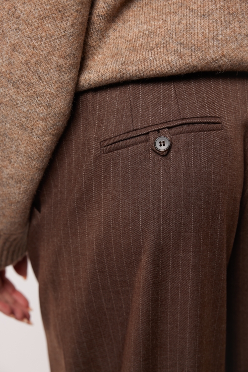 De Malala broek is een stijlvolle wide leg pantalon met een subtiel streeppatroon dat een chique touch toevoegt. De hoge taille en wijde pijpen zorgen voor een elegante en flatterende fit. Perfect om te combineren met een blouse of gilet voor een sophisticated look.
