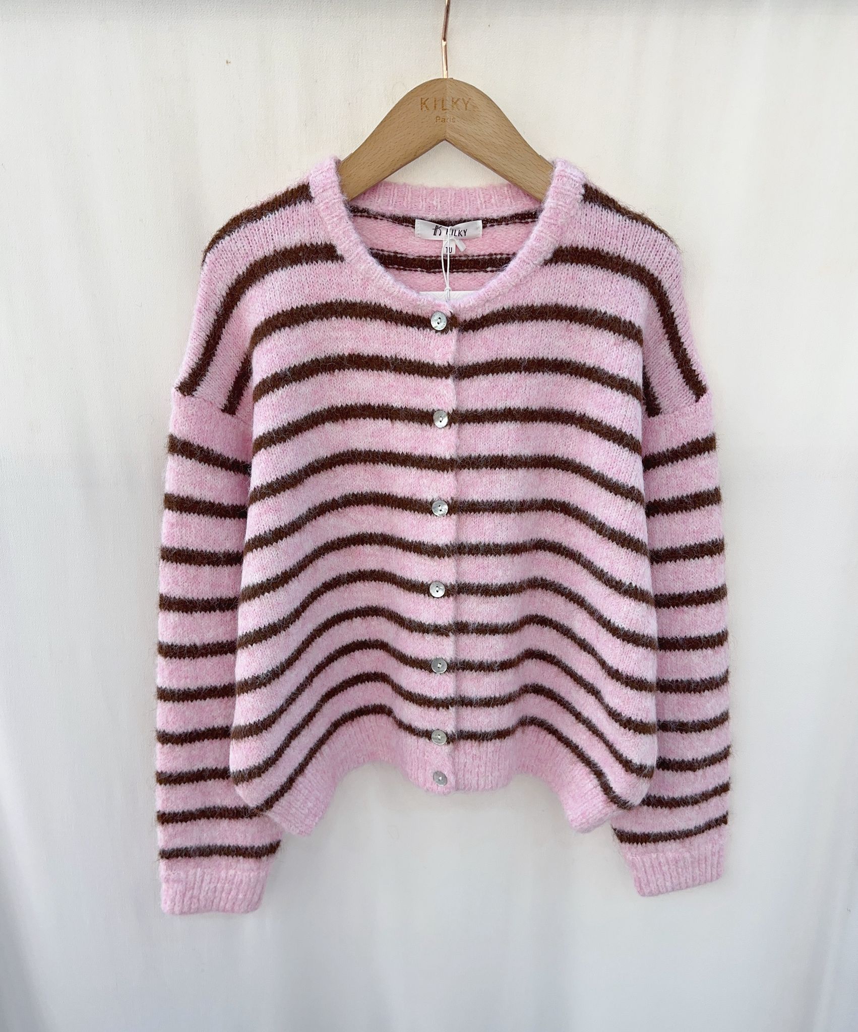 Artikelnummer: Eigen-Lorraine vest met strepen-roze