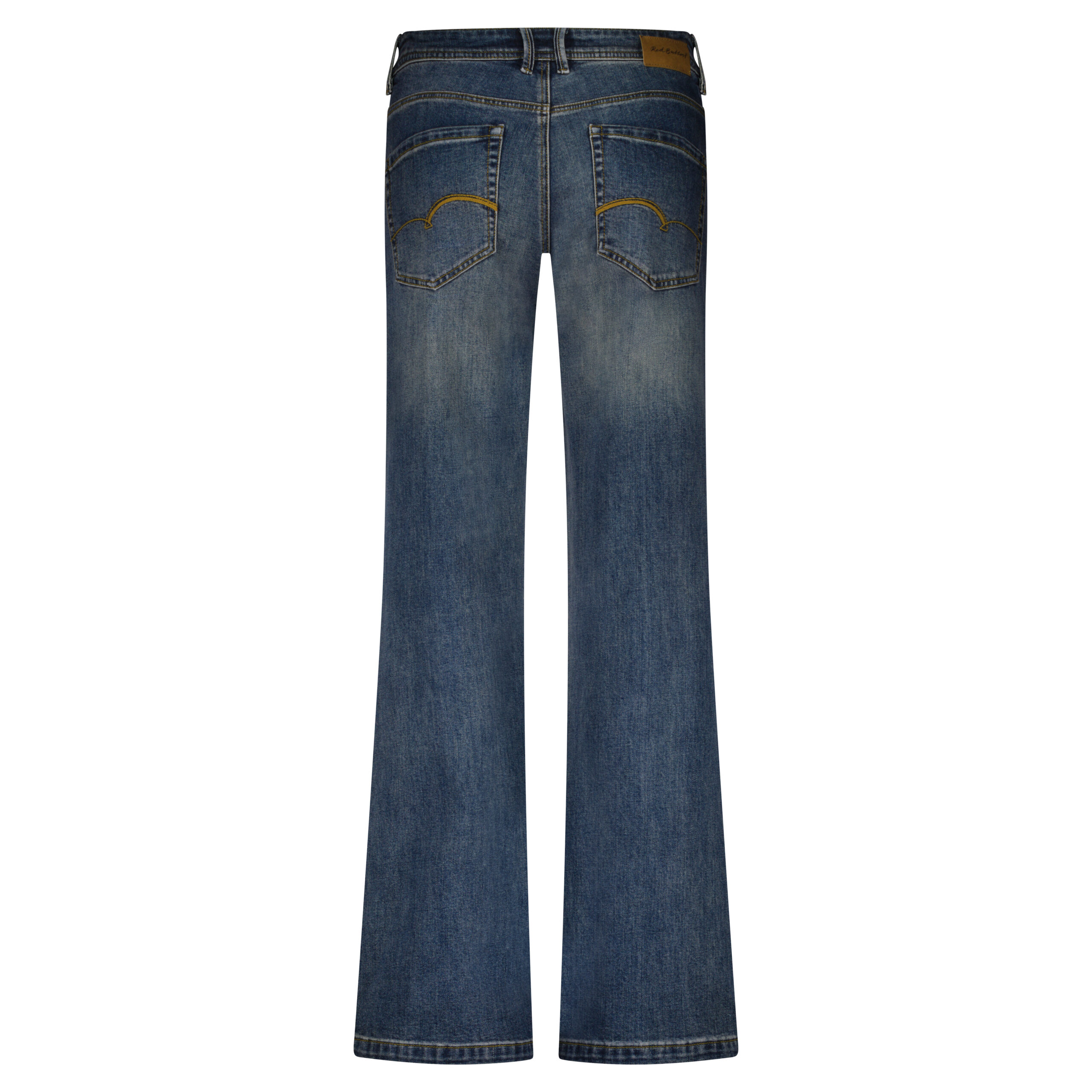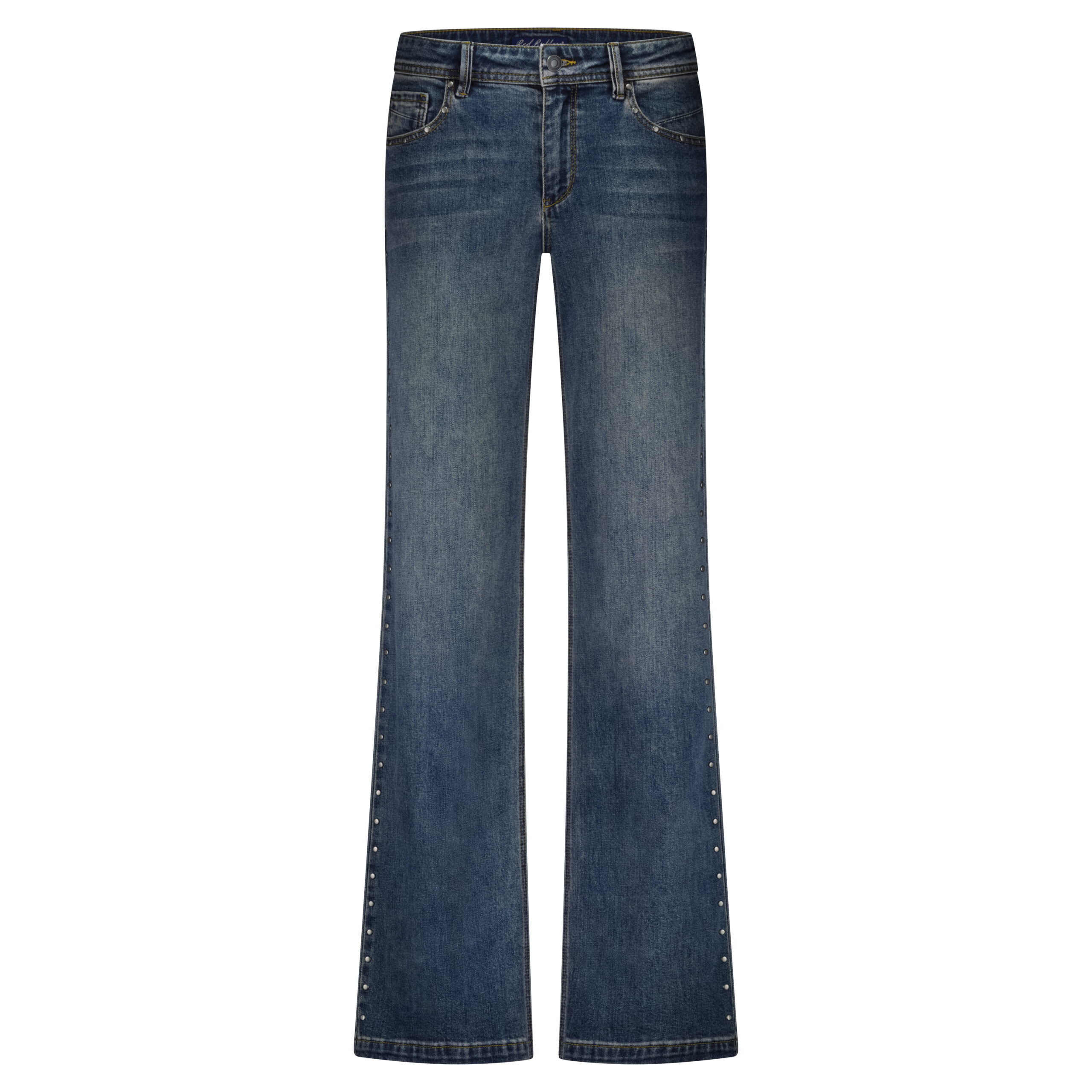 De Colette Studs is een wide leg jeans met studs bij de zijnaad en zakken. Deze jeans is aansluitend op de heup en loopt vanaf de bovenbeen wijd uit. De Colette Studs heeft een comfortabele middelhoge taille, 5 zakken en een vervaagde blauwe wassing. De jeans is gemaakt van stretch denim voor ultiem comfort.