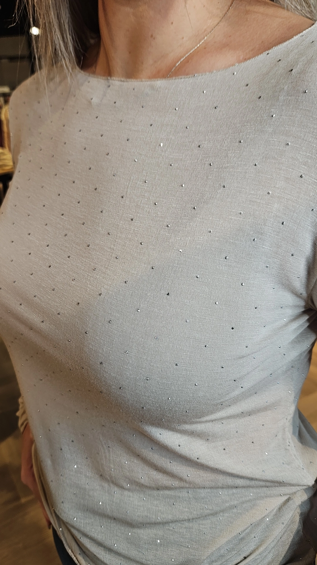 Artikelnummer: Eigen-Senorita top met strass beige-beige