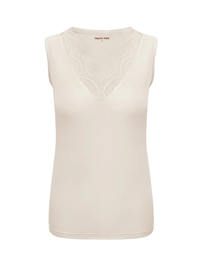 Triple Nine  top cahsmere met kant beigeTriple Nine top cahsmere met kant beige