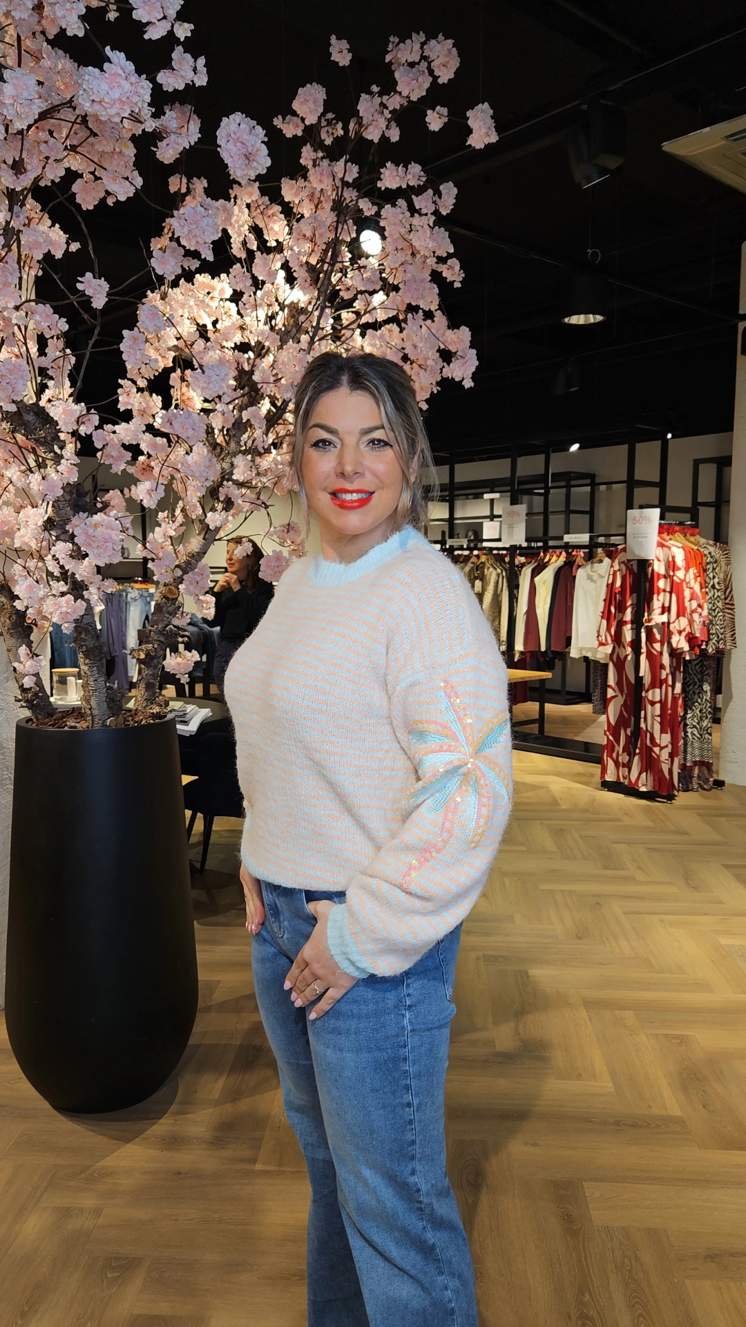 Yaell trui met strepen perzik/blauw
